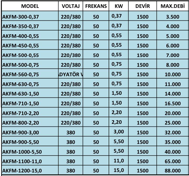 Yüksek hava debileri ve yüksek basınç kayıplarını karşılayabilen bu kovanlı fanların pervaneleri metal hammaddedendir.Sabit kanatlıdır.Pervane derecesi değiştirilemez.