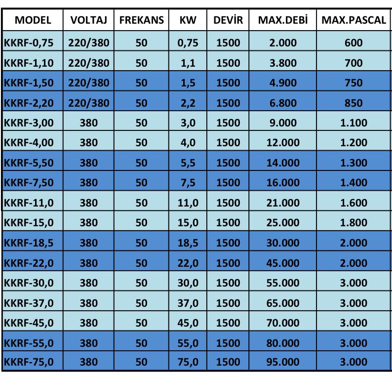 Alçak ve orta basınç sistemleri için tasarlanmış bu fanlar her türlü tesis havalandırılmasında kullanılabilirler. Kanal yapısı seyrek oluşu sayesinde pervane temizliği kolaydır. Kayış kasnak mekanizmalı tahriki sayesinde farklı devirlerde çalıştırabilme ve farklı debi ve basınç değerlerini karşılayabilme özelliğine sahiptir.